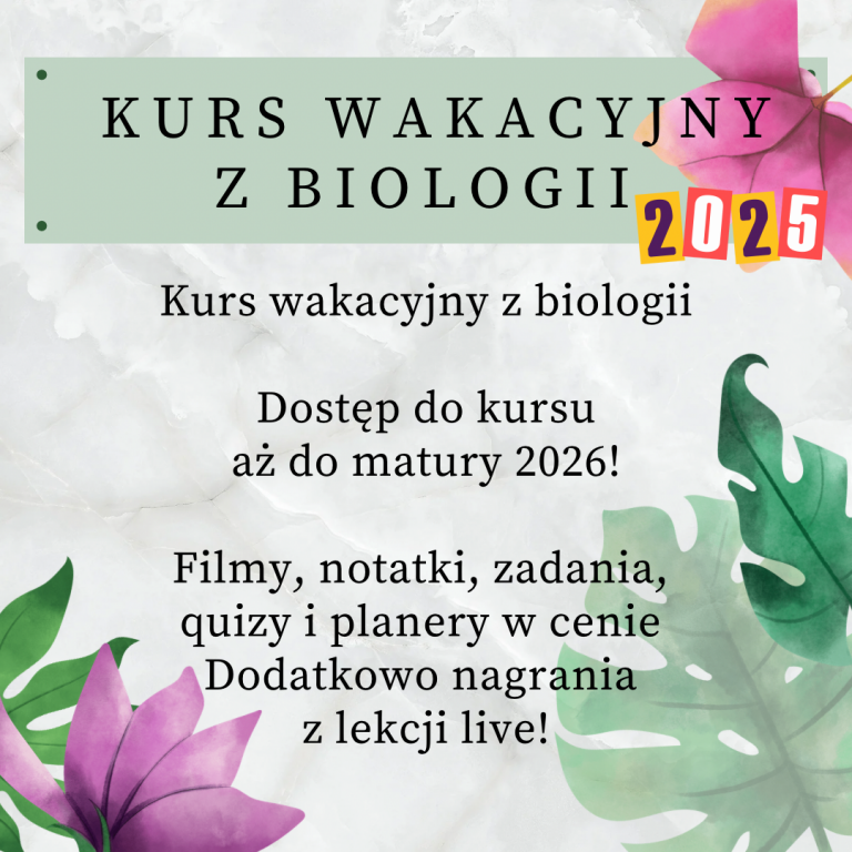 Witam. Wakacyjny kurs z biologii doskonale pomógł mi w zrozumieniu biologii. Pan prowadzący doskonale tłumaczy teorie w sposób przyjemny. Bardzo pomocne są zajęcia z egzaminatorami, z których jestem bardzo zadowolona. Dzięki kursowi czuję się pewniej w rozwiązywaniu zadań maturalnych. Czuję że moje marzenia o dostaniu się na medycynę mogę się spełnić 😀