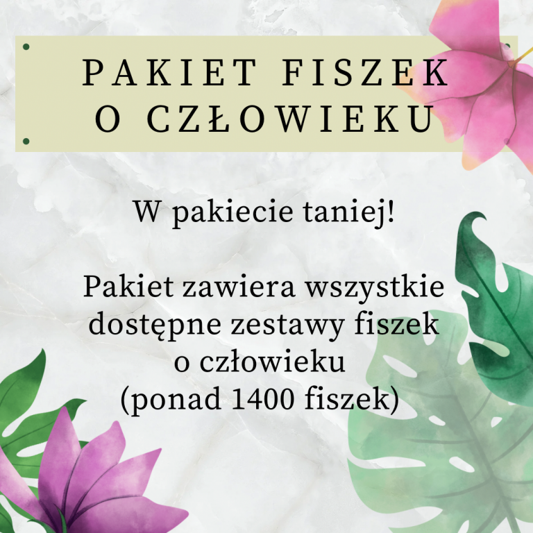 • Pakiet zawiera wszystkie dostępne zestawy fiszek o człowieku (ponad 1400 fiszek)
